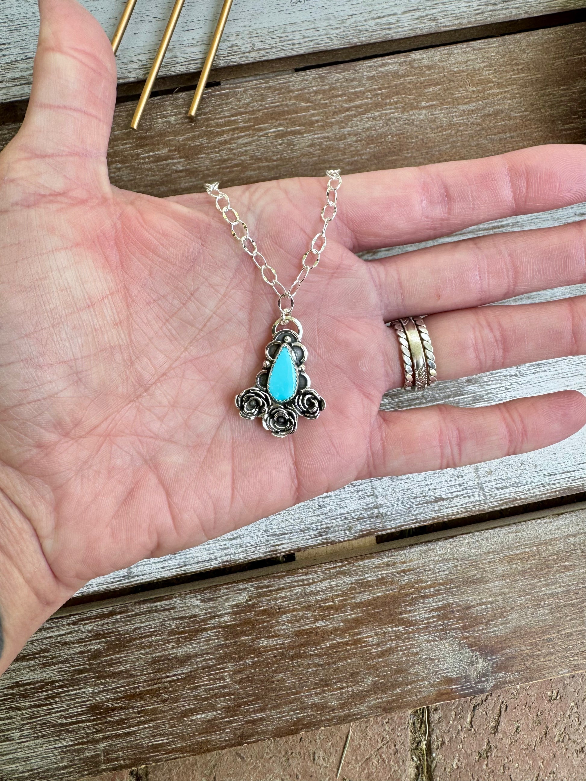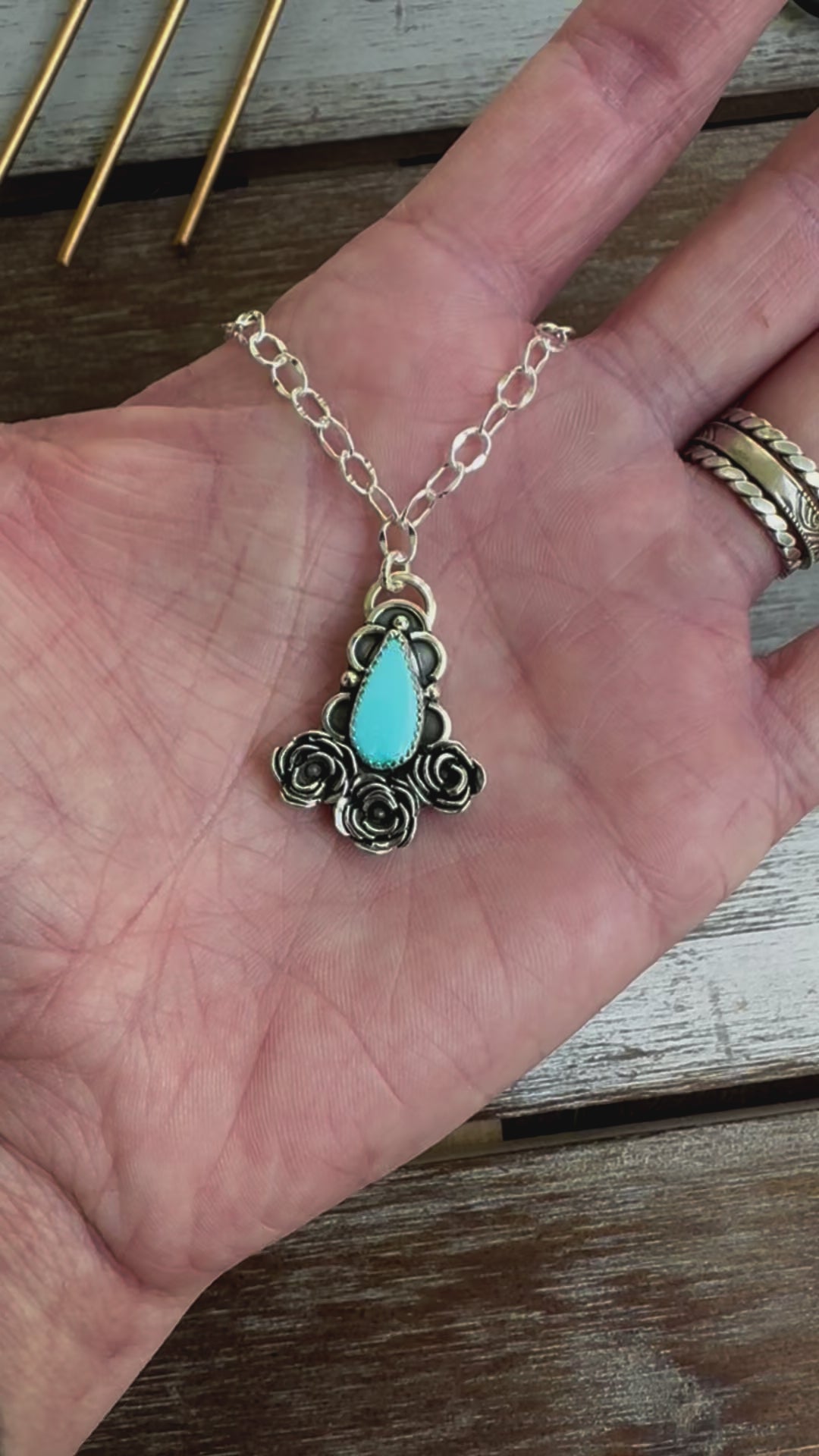 Wild Rose Sonoran Turquoise Pendant Necklace 16"